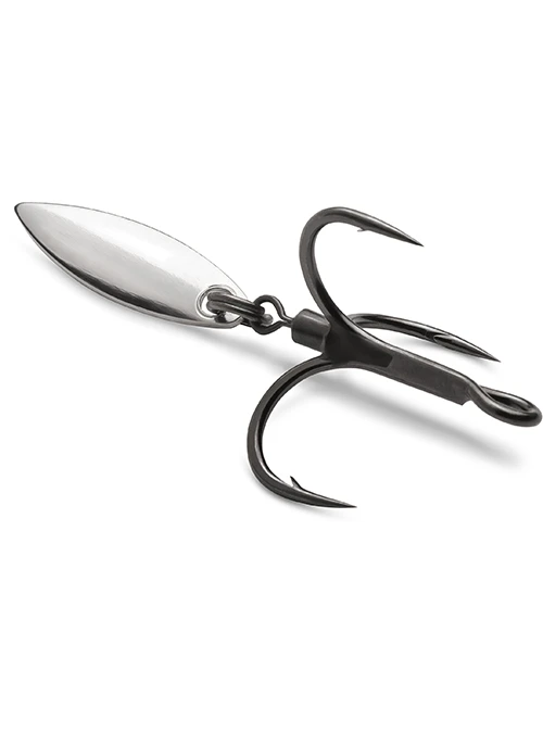Modeled after a longtime secret among pros, the VMC Bladed Hybrid Treble Shank Treble Hook 1X Hook combines VMC’s razor-sharp hooks with a touch of flash. Make your baits stand out from the competition! Built upon a 7548 short shank black nickel treble hook, this hook features a resin-sealed swivel and a black-nickel willow blade. The blade adds a glimmering accent to your presentation. Constructed with an inline eye, wide gap, and a super-sharp needlepoint. The VMC Bladed Hybrid Treble Short 1X Hook offers a quick and easy way to create a unique presentation.
